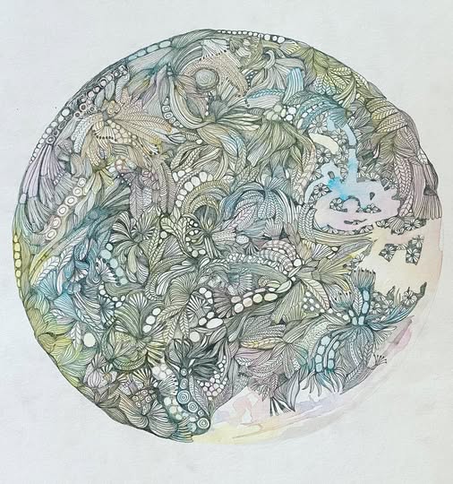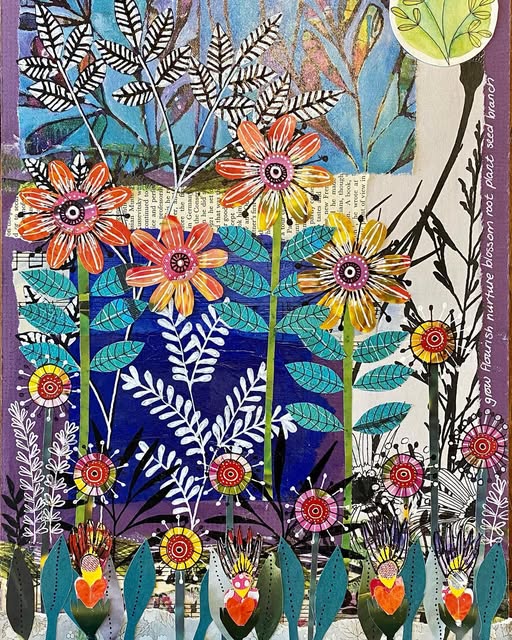 Whether I’m painting the spiralling geometry of a mandala, layering colour in a botanical collage, or guiding a workshop participant through their first intuitive brushstrokes, my work is always an invitation — to slow down, to look closer, and to find beauty in the sacred patterns of life.