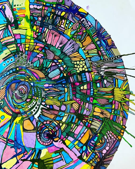 My personal practice is as diverse as the landscapes that inspire it. From intricate hand-drawn mandalas in ink and fineliner, to vibrant mixed-media collages, hand-painted ceramics, and my celebrated colour weaving work — each piece carries a reverence for the natural world and a deep belief in creativity as a path to wholeness.